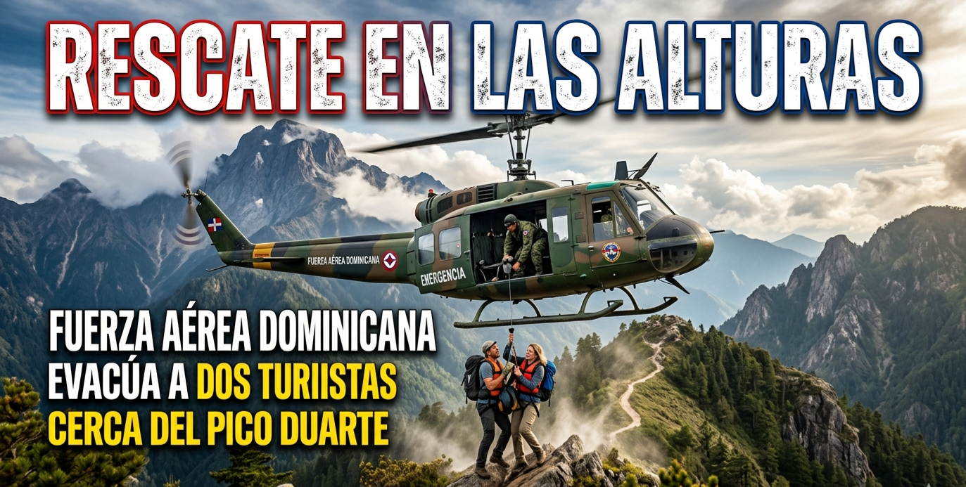 Dos turistas vivieron momentos de angustia en las inmediaciones del Pico Duarte, cuando su estado de salud requirió atención médica inmediata. Gracias a una rápida evacuación aeromédica coordinada por la Fuerza Aérea de la República Dominicana (FARD), ambos fueron rescatados con éxito.